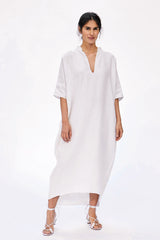 Liberation with a touch more structure, our elegant, collared, long dress has 3/4 sleeves and offers maximum freedom.